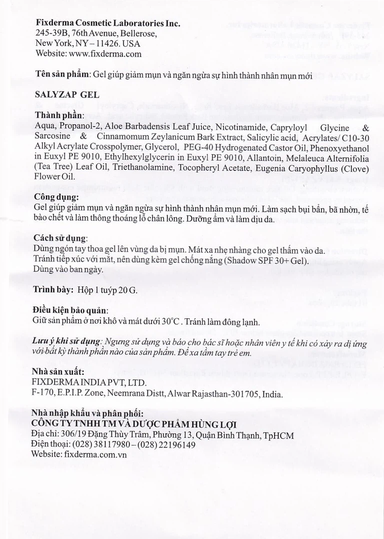 Fixderma Salyzap Gel Day Time giúp giảm mụn và ngăn ngừa sự hình thành nhân mụn mới.