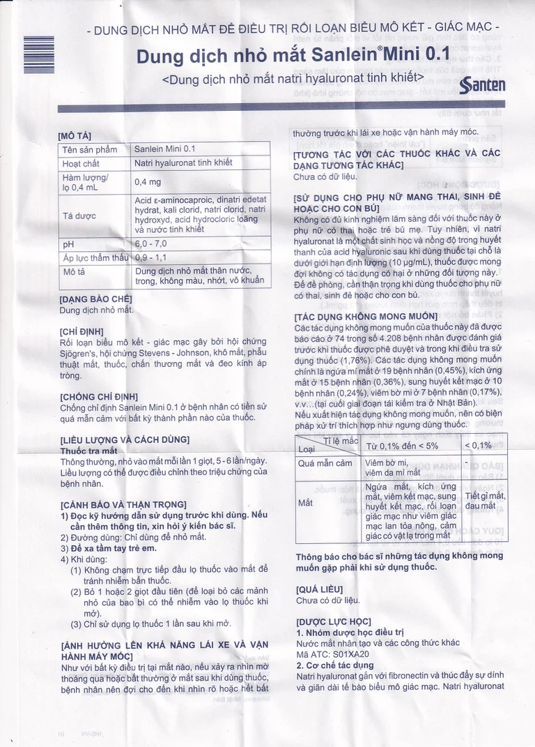Khi sử dụng thuốc Sanlein Mini 0.1%, bạn có thể gặp các tác dụng không mong muốn (ADR).