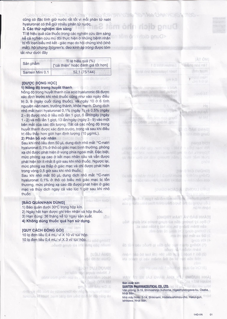 Sanlein Mini 0.1% Santen là thuốc dùng nhỏ mắt.