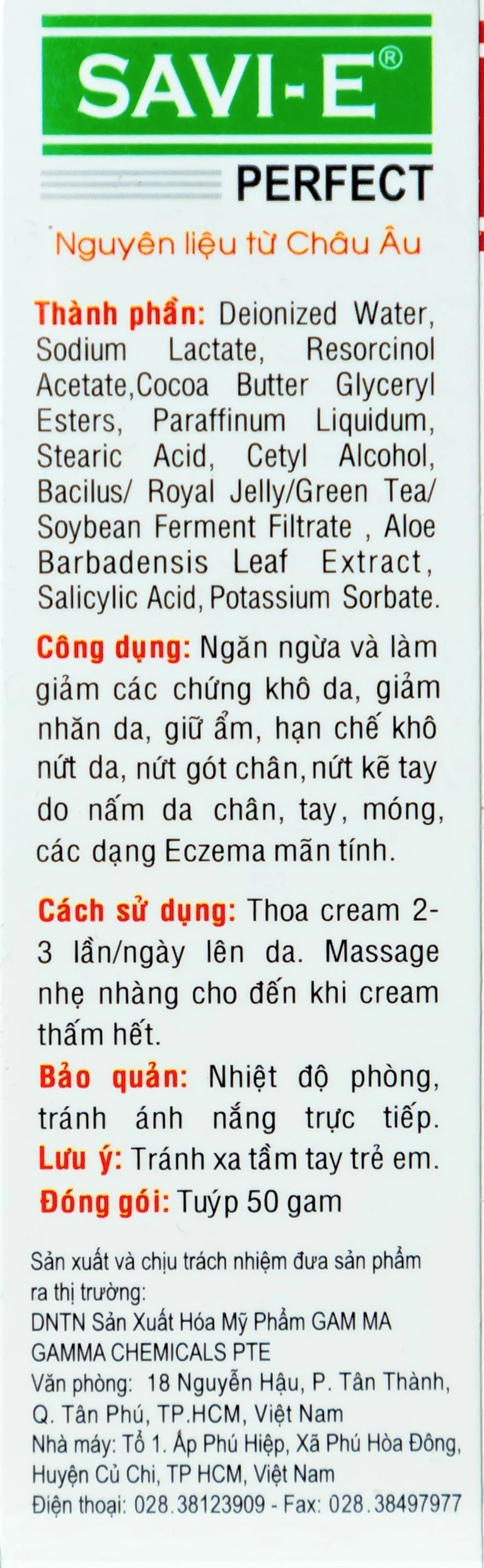 Thành phần của Kem bôi da Savi – E Perfect 50g