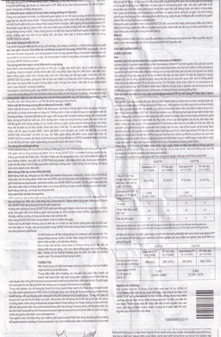 - Salmeterol tác dụng tại chỗ ở phổi, do đó nồng độ trong huyết tương không tiên đoán tác dụng điều trị.