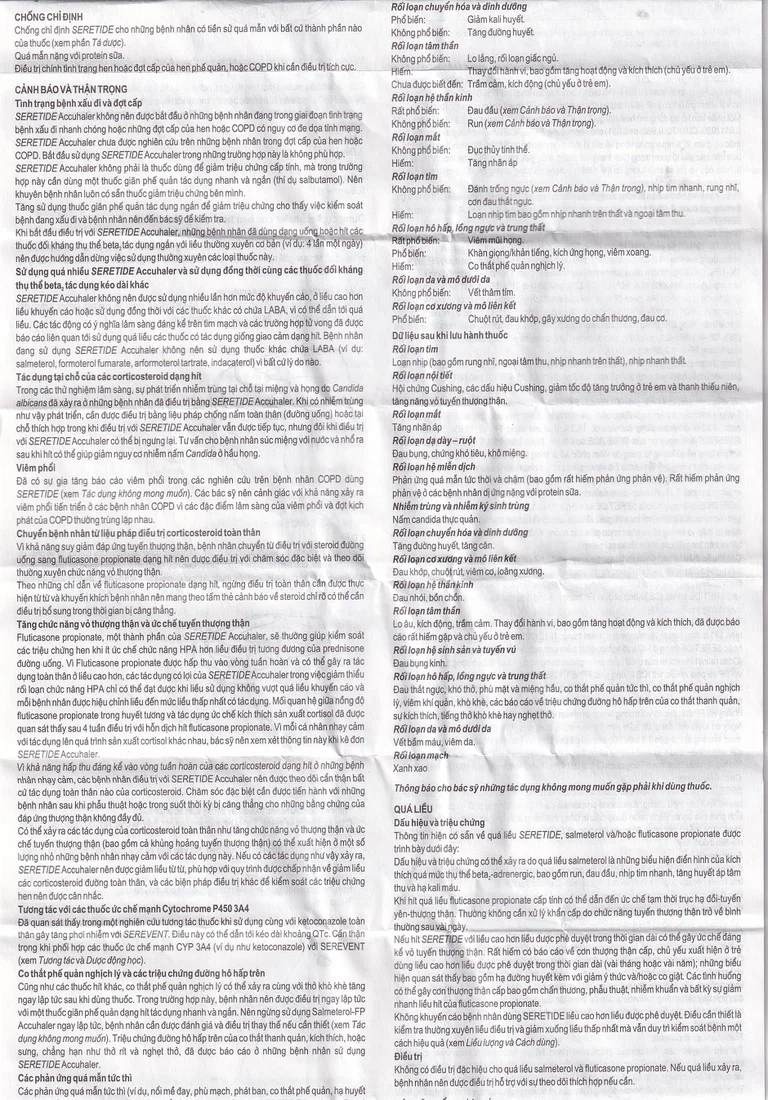 Seretide accuhaler 50/250 không phải là thuốc dùng để giảm triệu chứng cấp tính, mà trong trường hợp này cần dùng một thuốc giãn phế quản tác dụng nhanh và ngắn (thí dụ salbutamol). Nên khuyên bệnh nhân luôn có sẵn thuốc giảm triệu chứng bên mình.