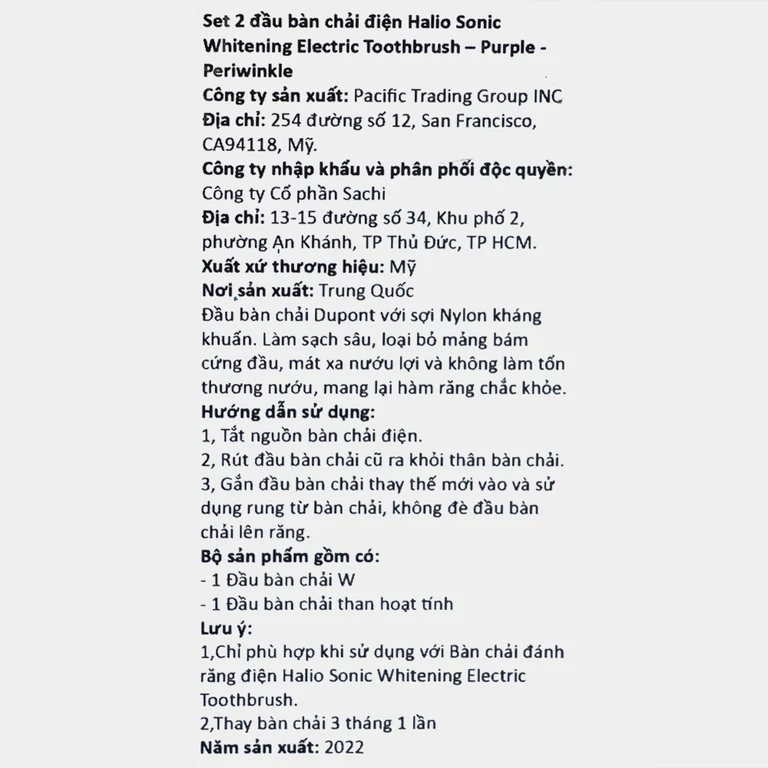 Thành phần của Halio Sonic Whitening Electric Toothbrush – Periwinkle