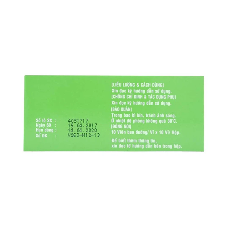 Liều thông thường ở người lớn là 1 – 2 viên x 3 lần/ngày.