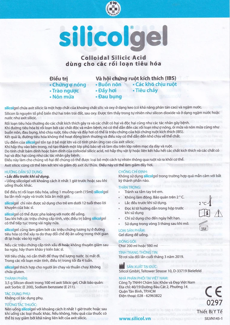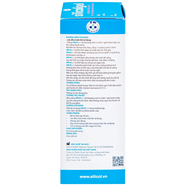 Gel dùng để uống Silicolgel Colloidal Silicic Acid 200ml dùng cho các rối loạn tiêu hóa, ợ nóng, trào ngược