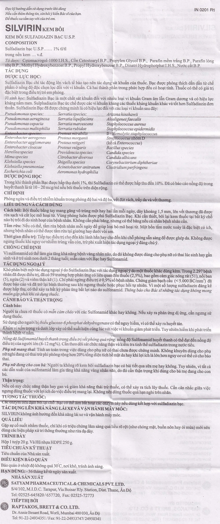 Sulfadiazine Bạc U.S.P | 1.0% tl/tl |