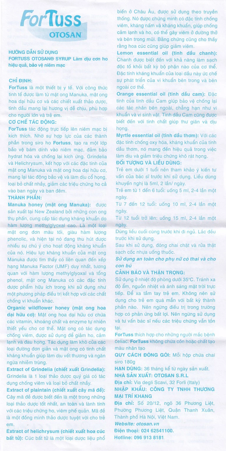 Siro ho Fortuss Otosan làm dịu cơn ho hiệu quả, bảo vệ niêm mạc (180g)