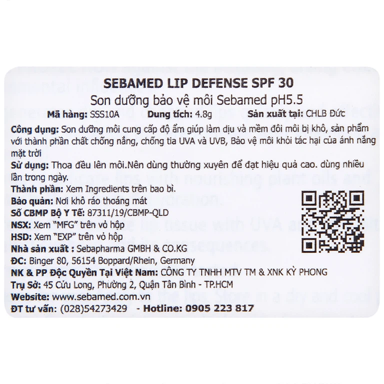 Son dưỡng bảo vệ môi Sebamed Lip Defense SPF30 cung cấp độ ẩm cho môi khô (4,8g)