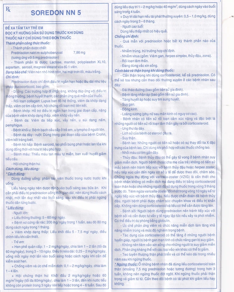 Thuốc Soredon NN5 được chỉ định dùng trong các trường hợp sau: