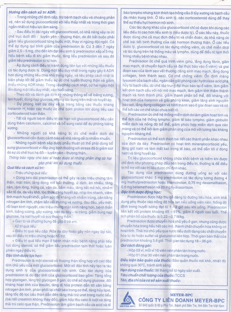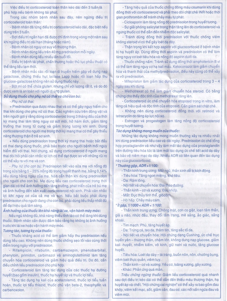 - Chống viêm và ức chế miễn dịch: 0,1 – 2 mg/kg/ngày, chia làm 1 – 4 lần.