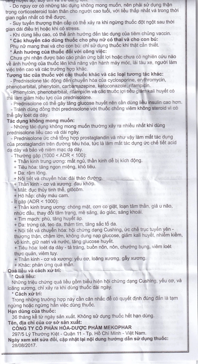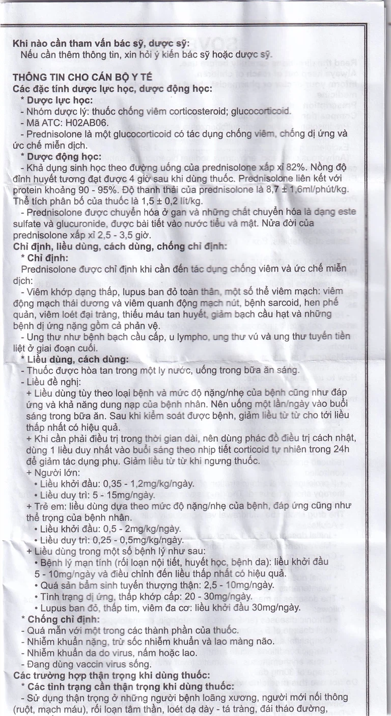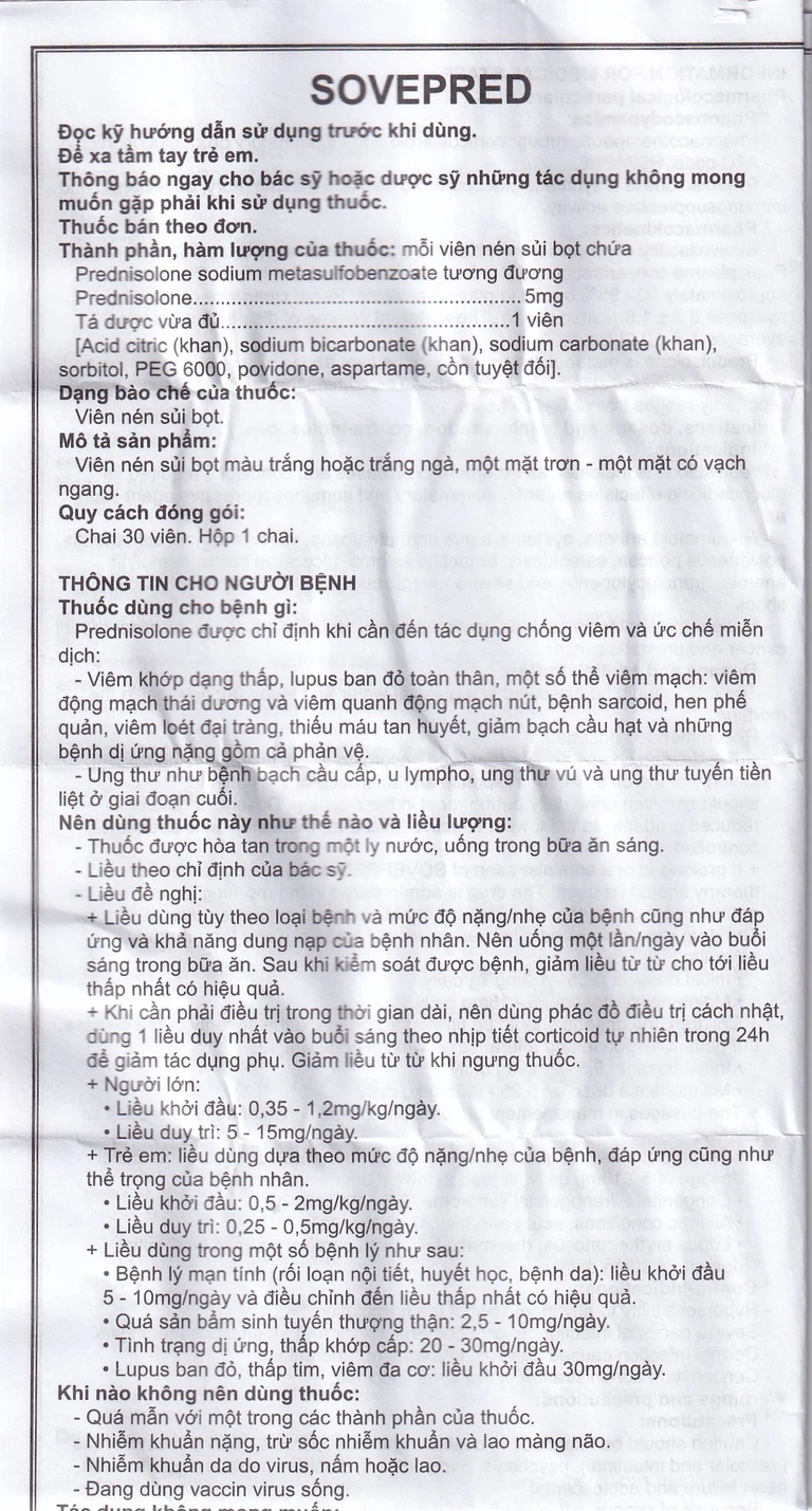 Thuốc Sovepred của Công ty Cổ phần Hóa – Dược phẩm Mekophar, chứa dược chất chính là prednisolone là 1 loại thuốc corticosteroid, được chỉ định trong các trường hợp để chống viêm và ức chế miễn dịch.