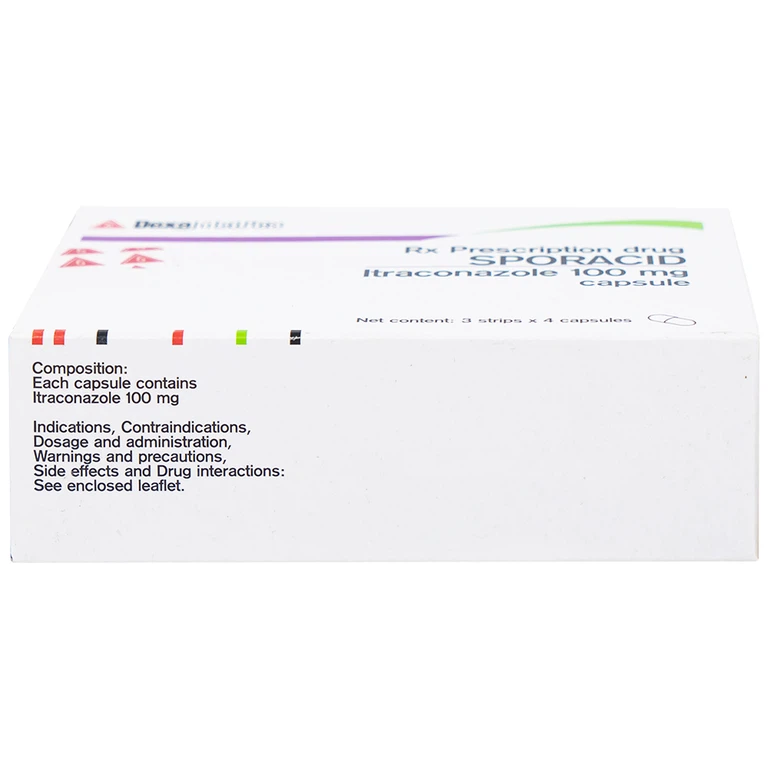 Thuốc Sporacid Itraconazole 100mg Dexa điều trị nấm candida âm hộ, âm đạo (3 vỉ x 4 viên)