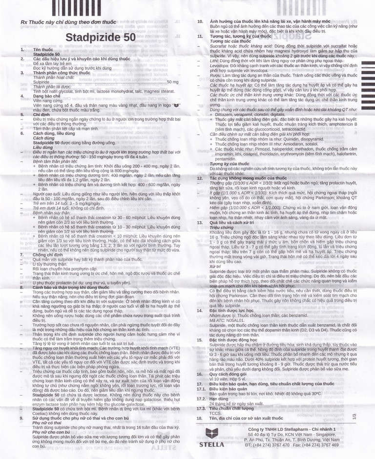 Công dụng của Thuốc Stadpizide 50