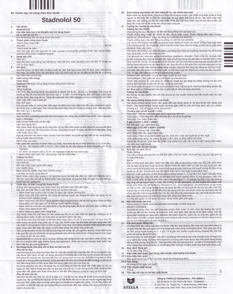 Liều Stadnolol 50 cho người lớn: Nếu bệnh nhân dung nạp được tổng liều 10 mg tiêm fĩnh mạch có thể uống 50 mg sau khi tiêm 10 phút, 12 giờ sau đó uống thêm 50 mg.