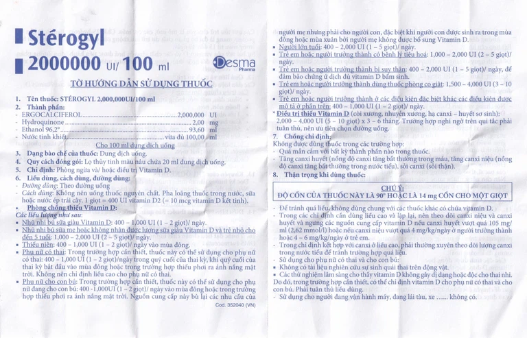 Thuốc Stérogyl 2000000 UI/100 mldùng theo đường uống.