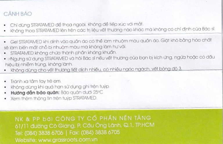 Gel hỗ trợ cải thiện sẹo Stratamed giúp thay thế chức năng của lớp sừng bị mất tại vết thương nhằm bảo vệ không cho các tác nhân bên ngoài tấn công vào vết thương (hóa chất, vi sinh vật,…), hạn chế hiện tượng mất nước qua da và tình trạng kích ứng da. Stratamed được sử dụng trong điều trị vết thương hở và ngăn ngừa sẹo.