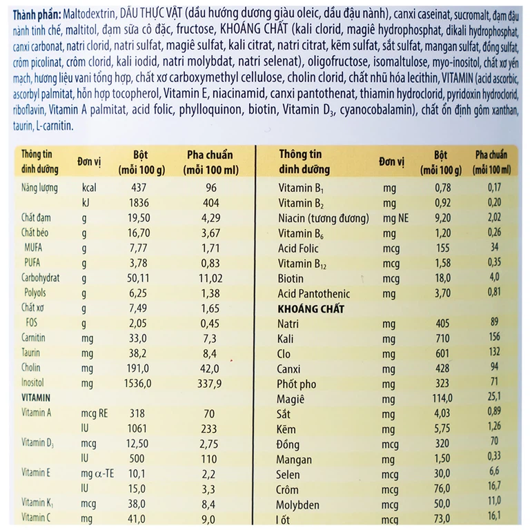 Tăng hàm lượng vi chất:Điển hình như vitamin D, canxi , sắt và kẽm, giúp đảm bảo nhu cầu dinh dưỡng cho người bệnh.