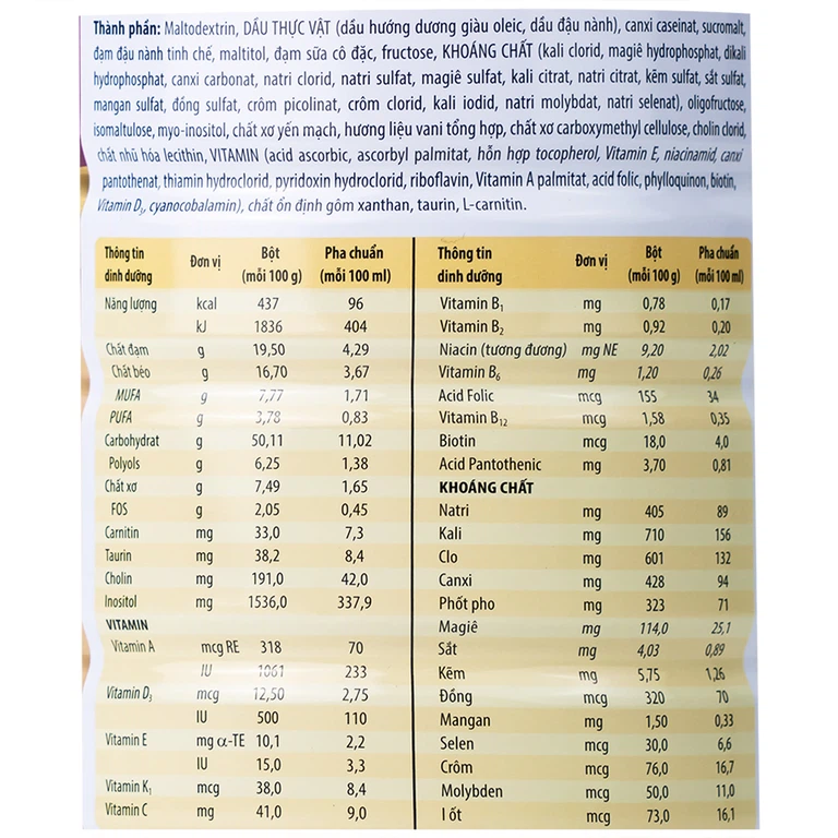 Bổ sung 35 dưỡng chất: Bao gồm 28 vitamin và khoáng chất, cung cấp nguồn dinh dưỡng đầy đủ và cân đối cho người đái tháo đường, tiền đái tháo đường và đái tháo đường thai kỳ.