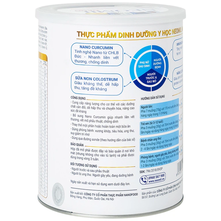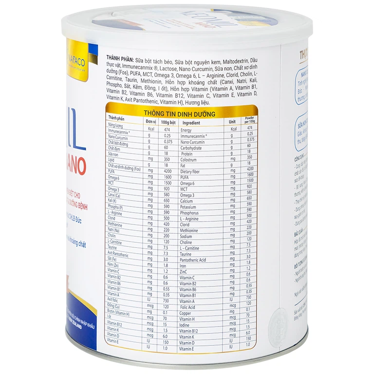 Sữa Neomil Nano là một loại sữa bột chuyên biệt với công thức dinh dưỡng đầy đủ và cân đối, được thiết kế đặc biệt cho những người đang trải qua giai đoạn trước và sau phẫu thuật, người gầy yếu và đang dưỡng bệnh. Sản phẩm này cung cấp năng lượng cao cho cơ thể với 1.5kcal/ml, tức gấp khoảng 1.5 lần so với nhiều loại sữa thông thường khác. Nhờ có cung cấp năng lượng và dưỡng chất cân đối, sữa Neomil Nano có thể hỗ trợ nâng cao sức đề kháng của cơ thể.