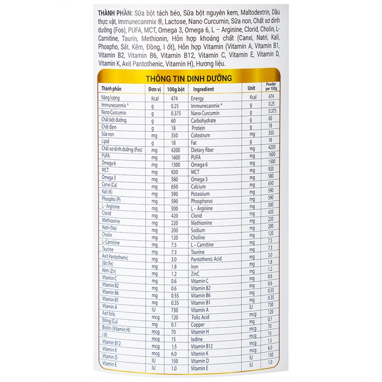 Thành phần chính trong Immunecanmix được chọn lọc và cân đối, giúp tối ưu hóa quá trình phục hồi sức khỏe, tăng cường thêm sức mạnh và năng lượng cho cơ thể, đồng thời cung cấp các dưỡng chất cần thiết. Do đó, Immunecanmix trong sữa Neomil Nano không chỉ giúp nâng cao khả năng phòng vệ của cơ thể mà còn rút ngắn thời gian hồi phục, giúp người dùng mau chóng hồi phục thể trạng. Việc này đặc biệt quan trọng với những người đang trải qua quá trình hồi phục sau phẫu thuật hay đối mặt với bệnh mãn tính.