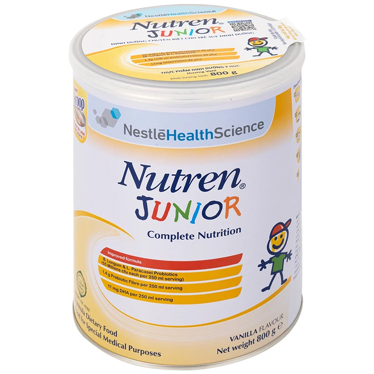 Sữa Nutren Junior 800g là sản phẩm dinh dưỡng có thể bổ sung hoặc thay thế hoàn toàn bữa ăn hàng ngày của bé suy dinh dưỡng hoặc gặp vấn đề về ăn uống.