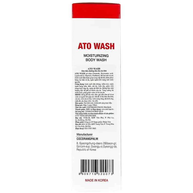 Sữa tắm Ato Wash đến từ Cocorang Palm – Hàn Quốc. Sản phẩm được phát triển bởi một đội ngũ chuyên gia và được sản xuất tại Hàn Quốc, hứa hẹn mang đến cho bạn trải nghiệm chăm sóc da đẳng cấp và hiệu quả.