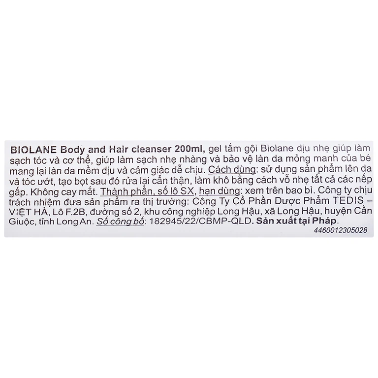 Sữa tắm gội dịu nhẹ cho bé dạng gel Biolane Body and Hair Cleanser giúp làm sạch tóc và cơ thể, giúp làm sạch nhẹ nhàng và bảo vệ làn da mỏng manh của bé mang lại làn da mềm dịu và cảm giác dễ chịu.
