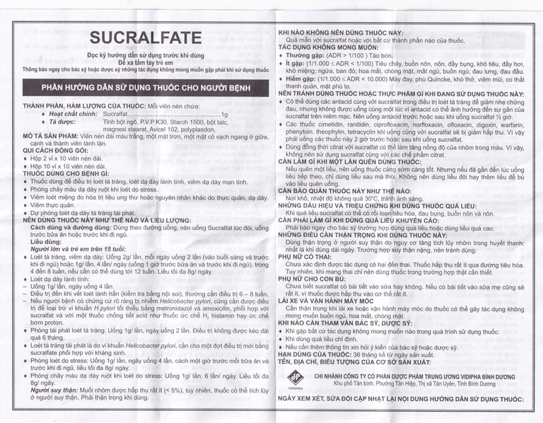 Khi sử dụng thuốc SUCRALFATE, bạn có thể gặp các tác dụng không mong muốn (ADR).