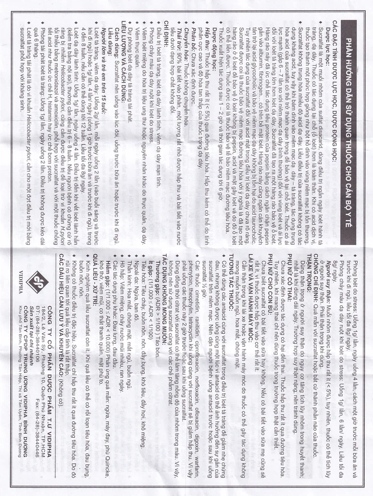 Triệu chứng: Khi quá liều sucralfat có thể có rối loạn tiêu hóa, đau bụng, buồn nôn và nôn.