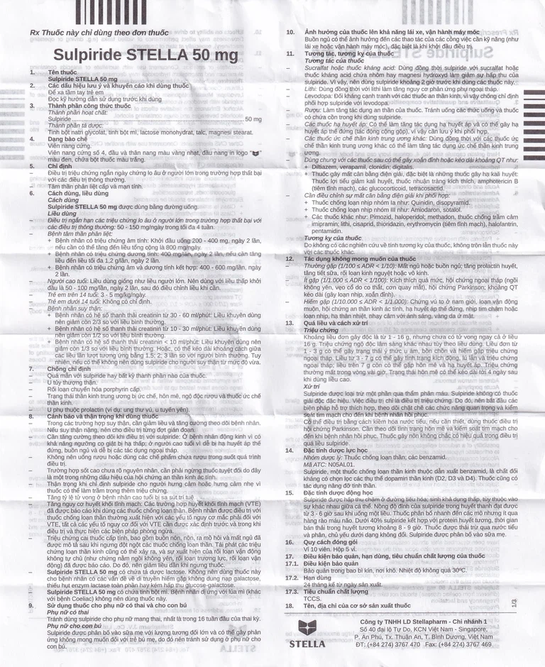 Thuốc Sulpiride 50mg STELLA được sử dụng trong các trường hợp sau: