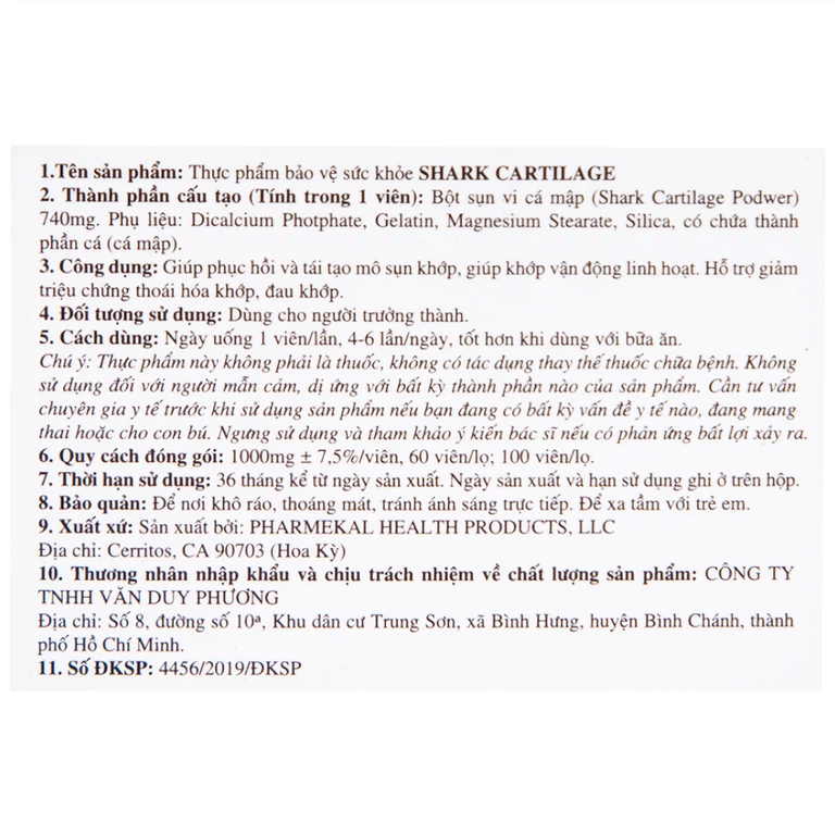 Shark Cartilage Pharmekal giúp phục hồi và tái tạo mô sụn khớp, giúp khớp vận động linh hoạt. Hỗ trợ giảm triệu chứng thoái hóa khớp, đau khớp.