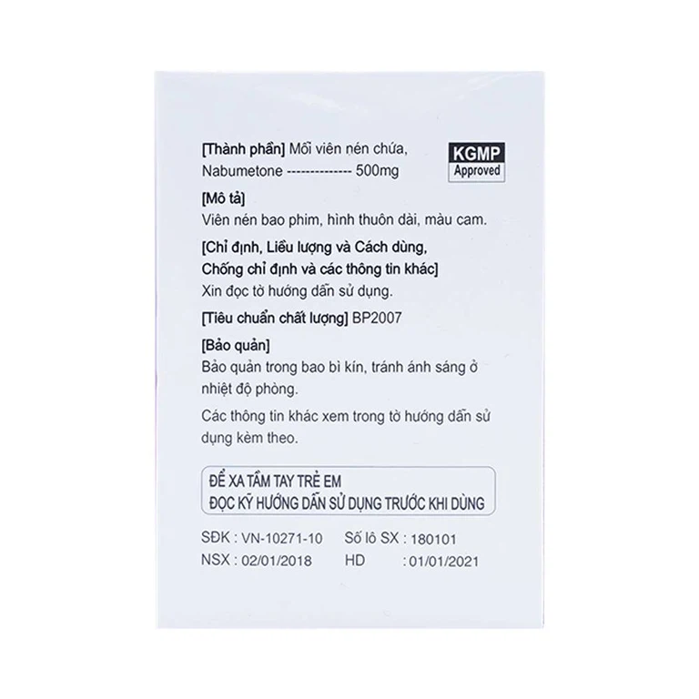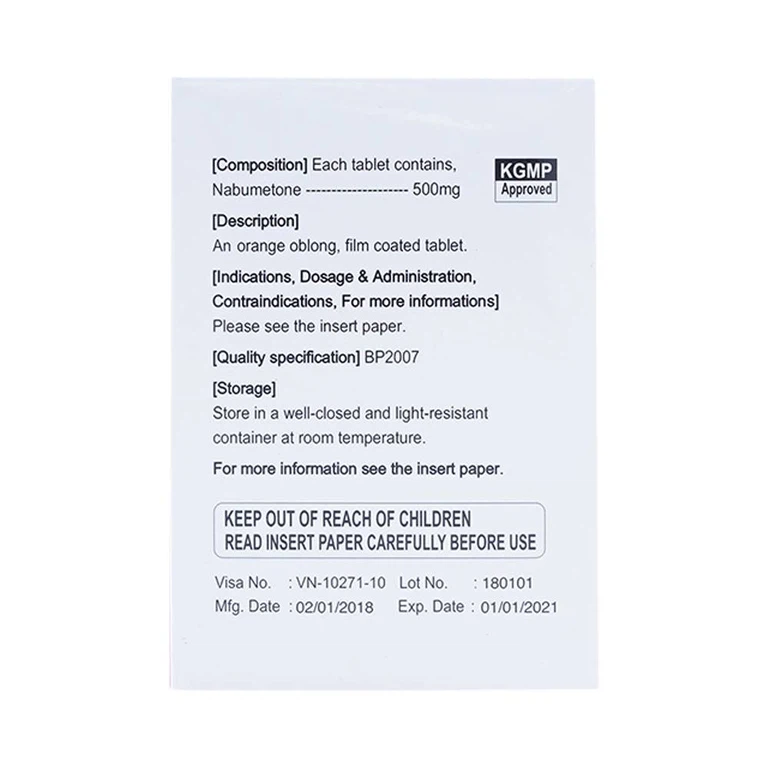 Nabumetone thuộc nhóm kháng viêm không steroide có tác dụng kháng viêm, giảm đau và hạ sốt. Thuốc có khả năng ức chế sinh tổng họp prostaglandin, là chất trung gian gây viêm.