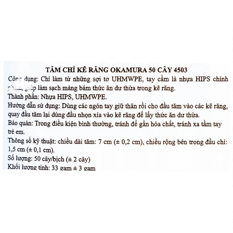 Tăm chỉ kẽ răng Okamura làm sạch mảng bám thức ăn dư thừa trong kẽ răng (50 cây)