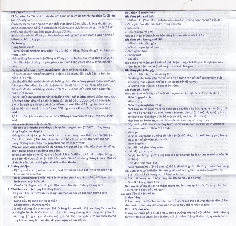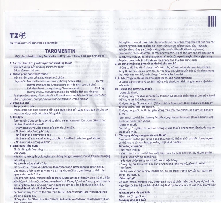 Các triệu chứng cần thận trọng khi sử dụng Taromentin: Việc sử dụng Taromentin có thể gây tình hình xấu hơn hoặc gây ra tác dụng phụ nghiêm trọng bao gồm cả phản ứng dị ứng, co giật và viêm ruột già. Cần thận trọng để ý tới các triệu chứng trong khi sử dụng Taromentin, để giảm nguy cơ xấu xảy ra.