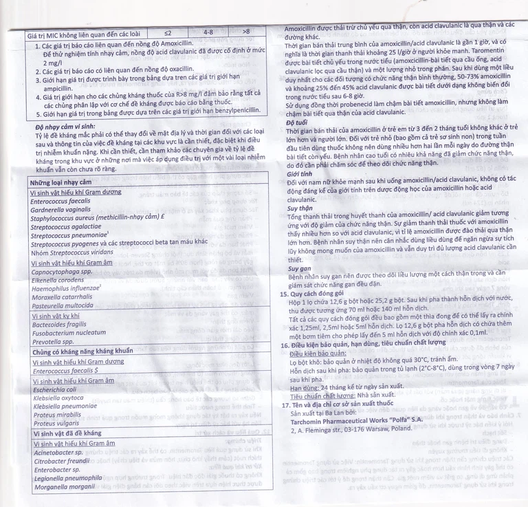 Amoxicillin được thải trừ chủ yếu qua thận, còn acid clavulanic là qua thận và các đường khác.