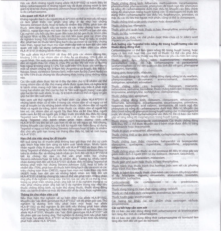 Dùng đồng thời Tegretol và một số thuốc lợi tiểu (hydrochlorothiazid, furosemid) có thể dẫn đến giảm natri huyết triệu chứng.