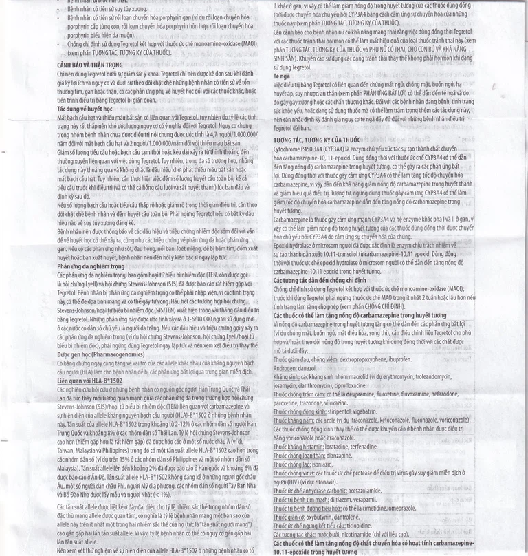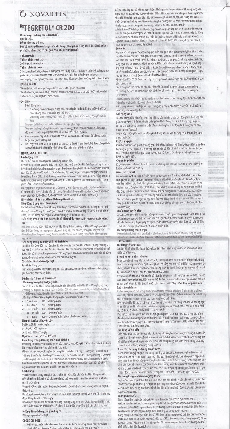 Hỗn dịch uống Tegretol CR 200mg chứa parahydroxybenzoat là chất có thể gây ra các phản ứng dị ứng (có thể là dị ứng chậm). Nó còn chứa sorbitol, vì vậy không nên dùng cho bệnh nhân có các vấn đề di truyền hiếm gặp về không dung nạp fructose.