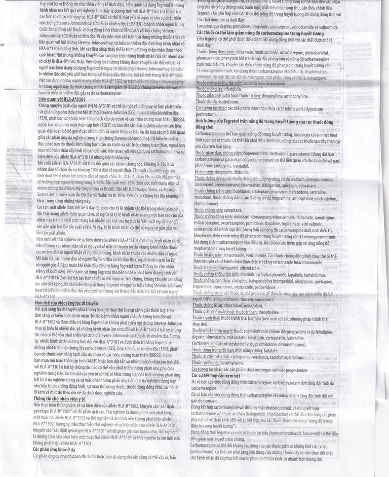 Dùng đồng thời Tegretol CR 200mg và một số thuốc lợi tiểu (hydrochlorothiazid, furosemid) có thể dẫn đến giảm natri huyết triệu chứng.