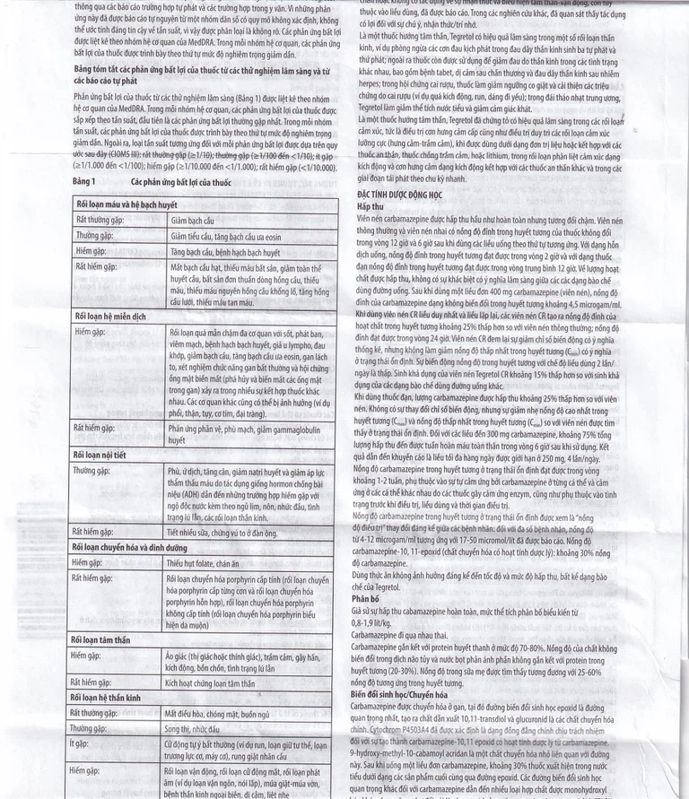 Vì liều Tegretol CR 200mg hỗn dịch uống được dùng sẽ tạo ra nồng độ đỉnh cao hơn so với cùng liều tính theo mg ở dạng viên nén, nên bắt đầu với liều thấp và tăng liều từ từ để tránh các phản ứng bất lợi.
