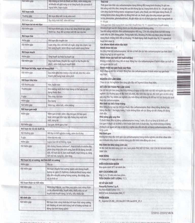 Đã có một vài trường hợp co giật ở trẻ sơ sinh và/hoặc suy hô hấp liên quan với việc người mẹ sử dụng Tegretol CR 200mg và các thuốc chống động kinh khác đồng thời. Một vài trường hợp nôn, tiêu chảy hoặc giảm bú ở trẻ sơ sinh cũng đă được báo cáo liên quan với việc người mẹ sử dụng Tegretol CR 200mg. Những phản ứng này có thể đại diện cho hội chứng ngưng thuốc ở trẻ sơ sinh.