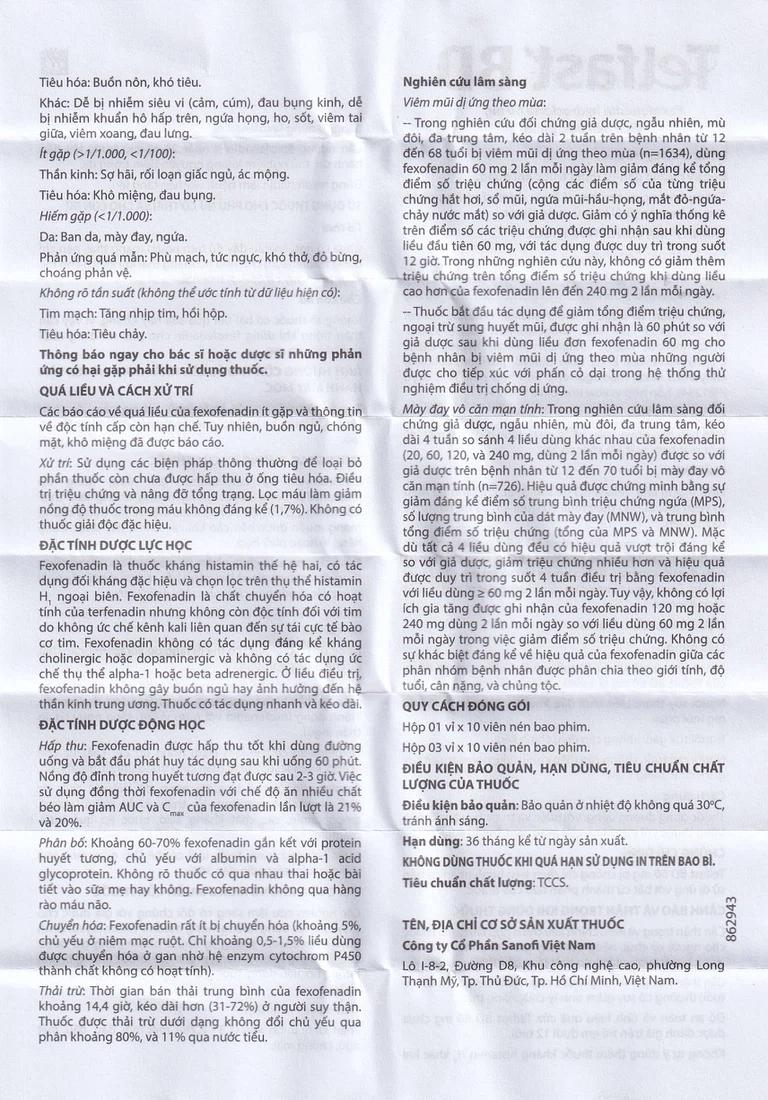 Cách dùng Viên nén bao phim Telfast BD 60mg