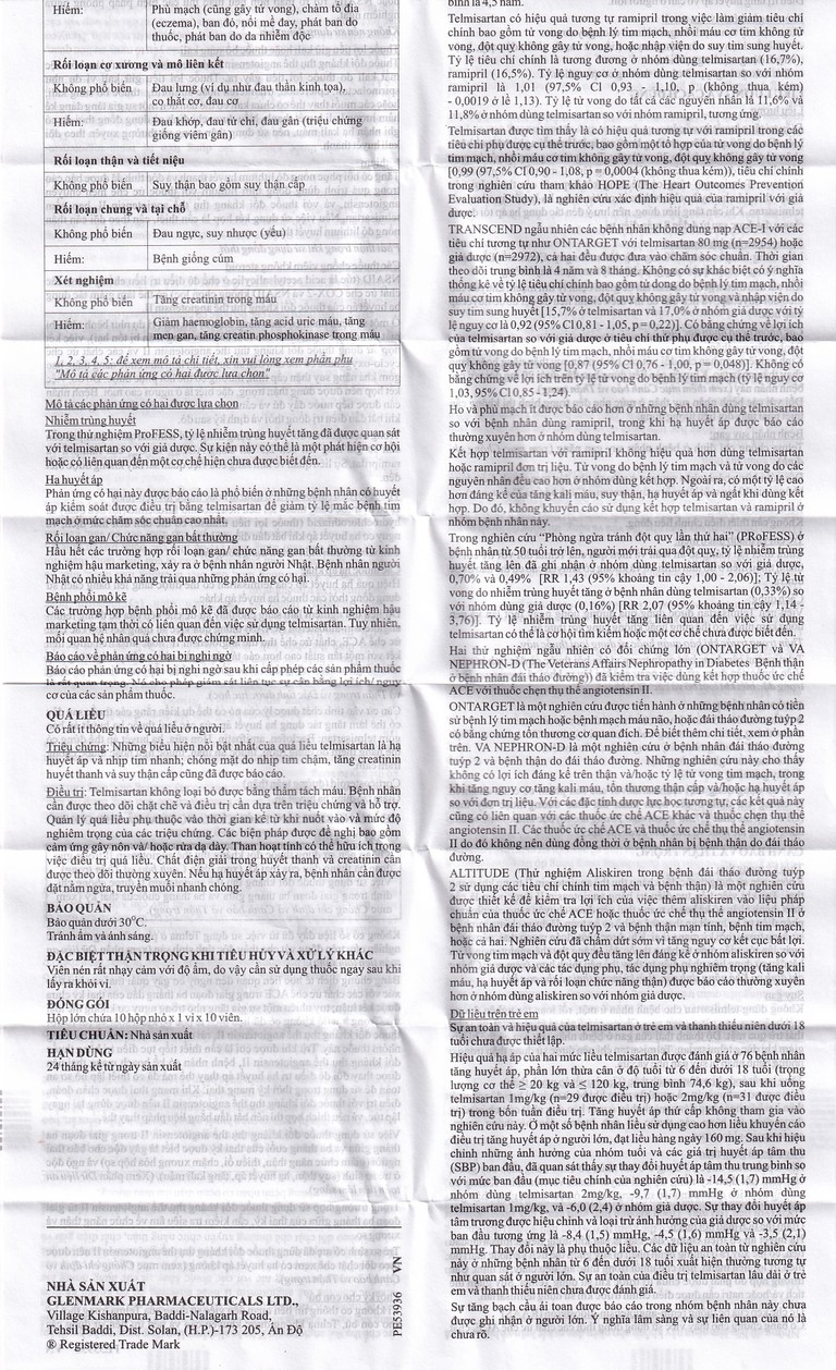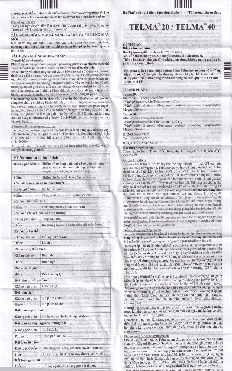 Thuốc Telma được sản xuất bởi công ty Glenmark Pharmaceuticals Ltd, có thành phần hoạt chất là Telmisartan chỉ định trong điều trị tăng huyết áp vô căn ở người lớn. Ngoài ra thuốc còn giúp phòng ngừa các bệnh lý tim mạch ở bệnh nhân người lớn có nguy cơ cao.