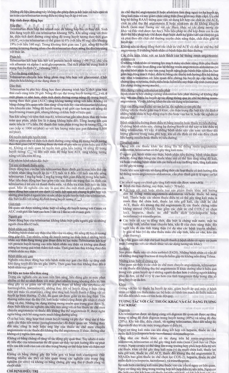 Những thuốc khác: Telmisartan không ảnh hường đến dược động học ở trạng thái ổn định khi dùng cùng amlodipin, glibenclamid, ibuprofen, paracetamol và hydrochlorothiazid.