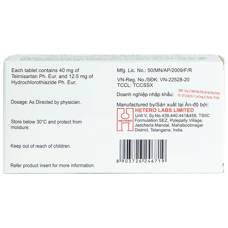 Thuốc Telsar-H 40/12.5 Hetero điều trị tăng huyết áp (3 vỉ x 10 viên)