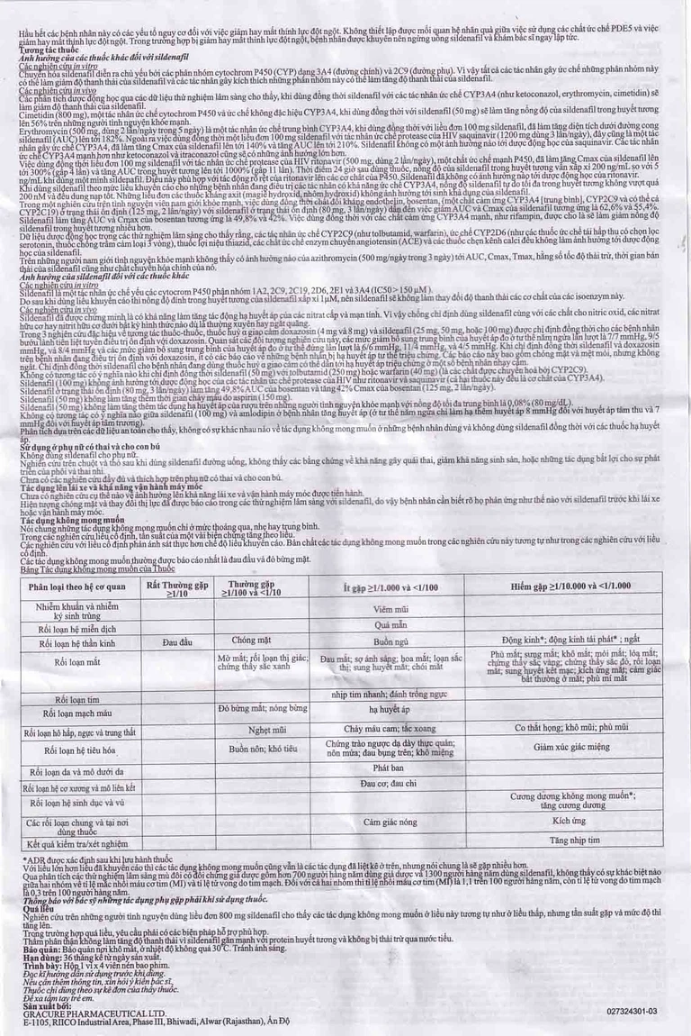 Chống chỉ định dùng đồng thời các tác nhân ức chế PDE5, bao gồm sildenafil, với chất kích thích guanylate cyclase, như riociguat, do có khả năng gây ra hạ huyết áp triệu chứng.