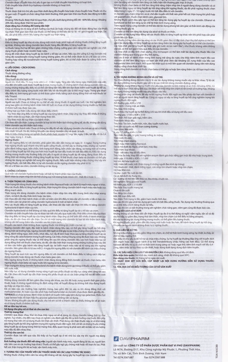 - Là thuốc hàng thứ hai để làm giảm những triệu chứng cường giao cảm nặng khi cai nghiện heroin hoặc nicotin.