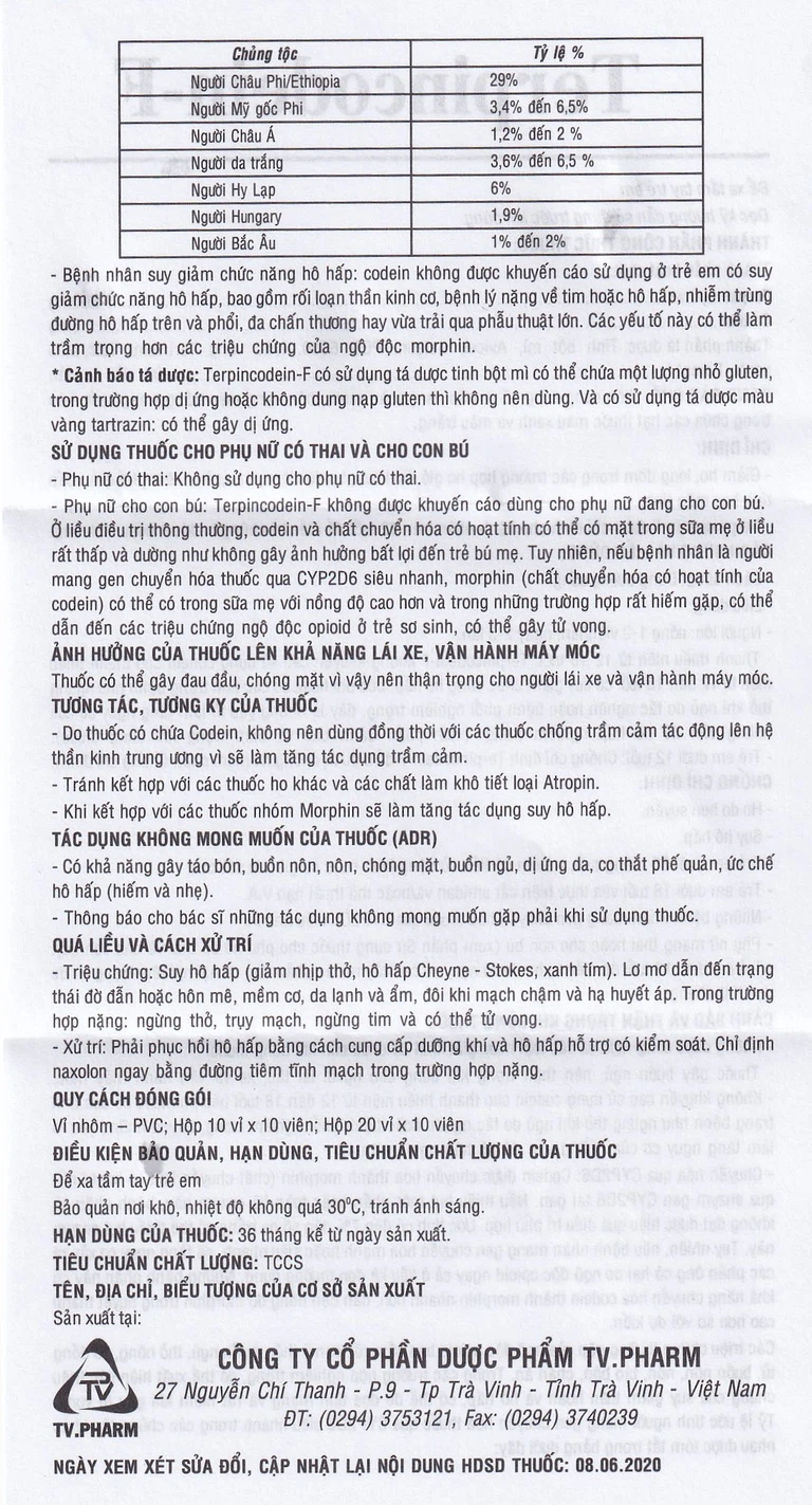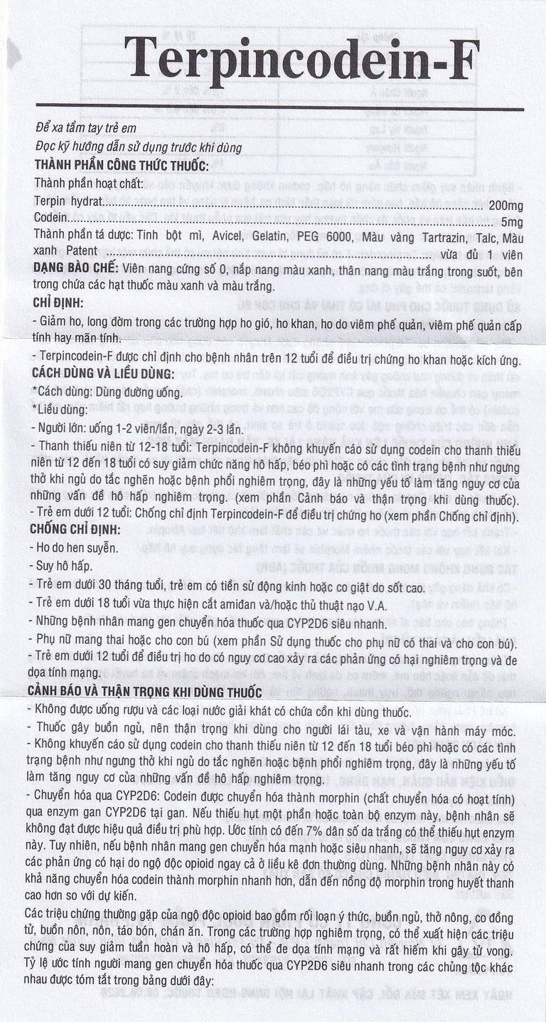 Thuốc Terpincodein-Fchống chỉ định trong các trường hợp sau: