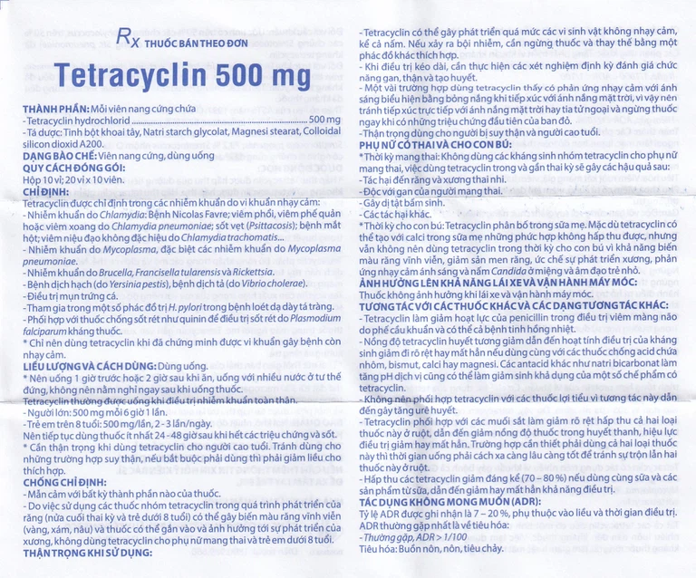 Tetracyclin hydrochlorid | 500mg |