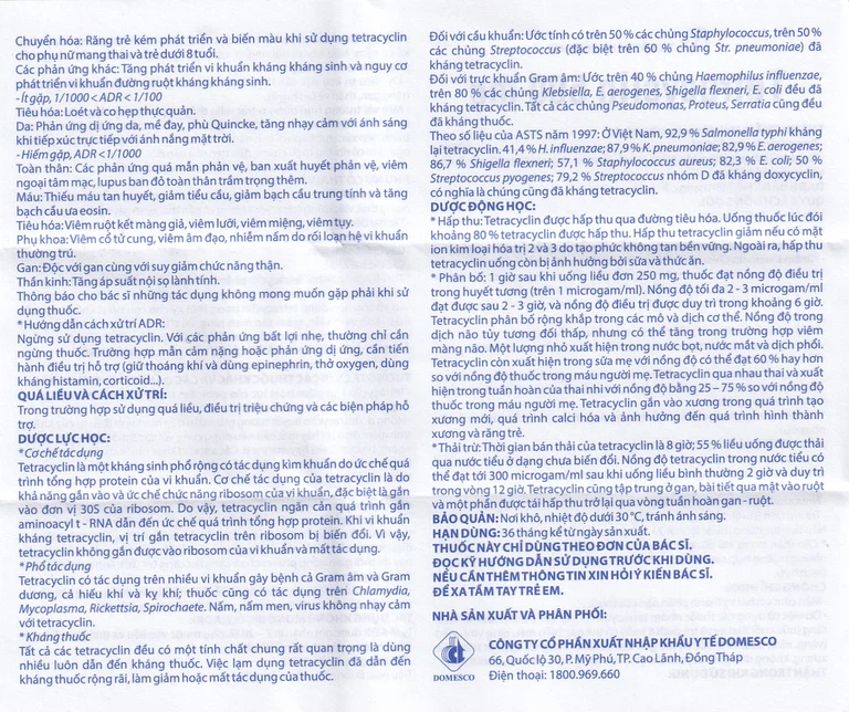 Công dụng của Thuốc Tetracyclin 500mg