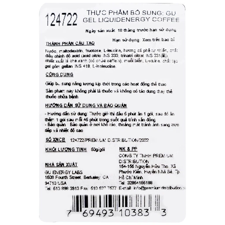 Thực phẩm bổ sung GU Gel Liquidenergy Coffee giúp bổ sung năng lượng kịp thời trong các hoạt động thể thao. Với công thức đặc biệt cùng các thành phần thiết yếu, một gói sản phẩm (60g) giúp cơ thể vận động bền bỉ trong suốt 45 phút.